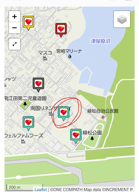 日本救急医療財団全国AEDマップの地図上にも載ってます!