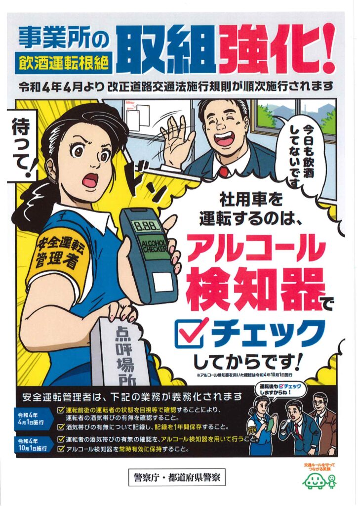 運転者のアルコールチェックが義務化されましたね!