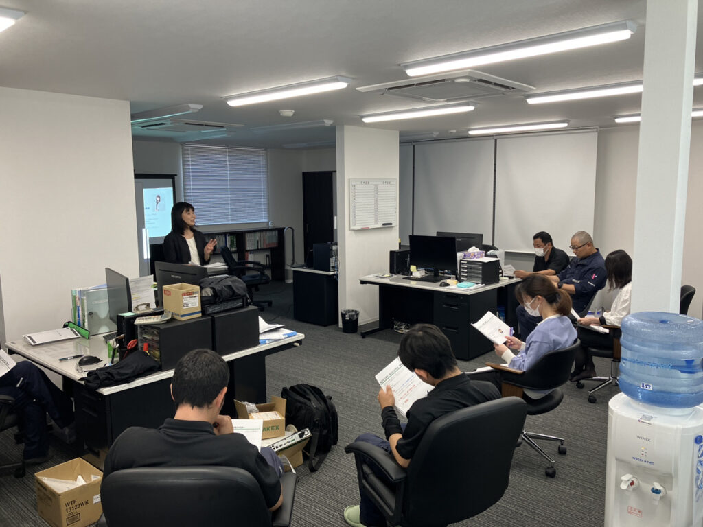 若手社員だけではなく、中堅社員も全員参加しての